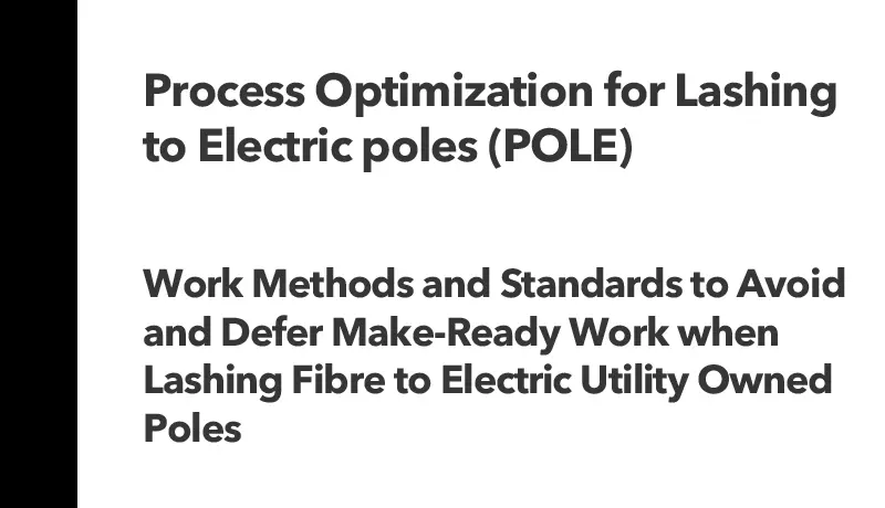 Utility Resources Utility Manual Executive Summaries Industry Engagement Value Associated with Adhering Rural Optimization for Accelerated Deployment (ROAD) Process Optimization for Lashing to Electric poles (POLE) Utility Companies